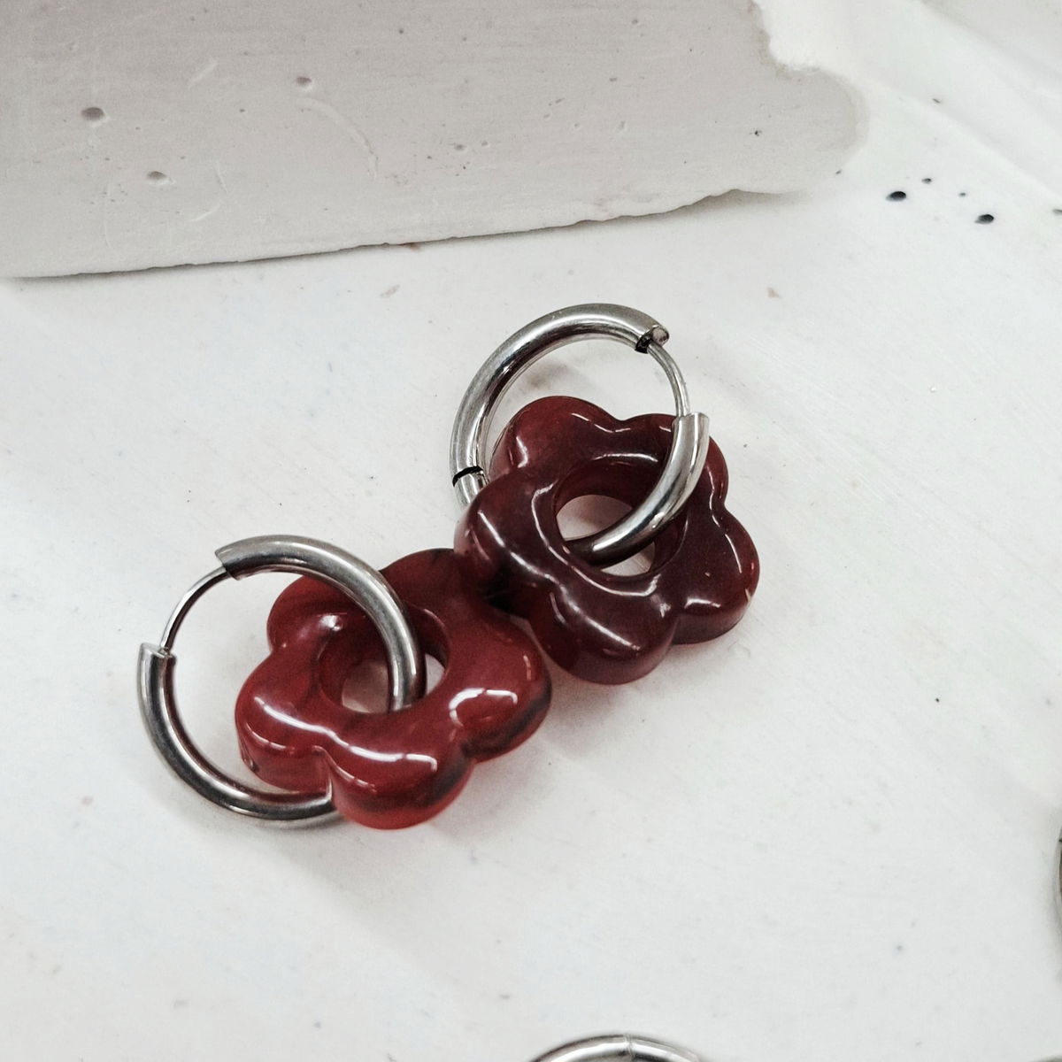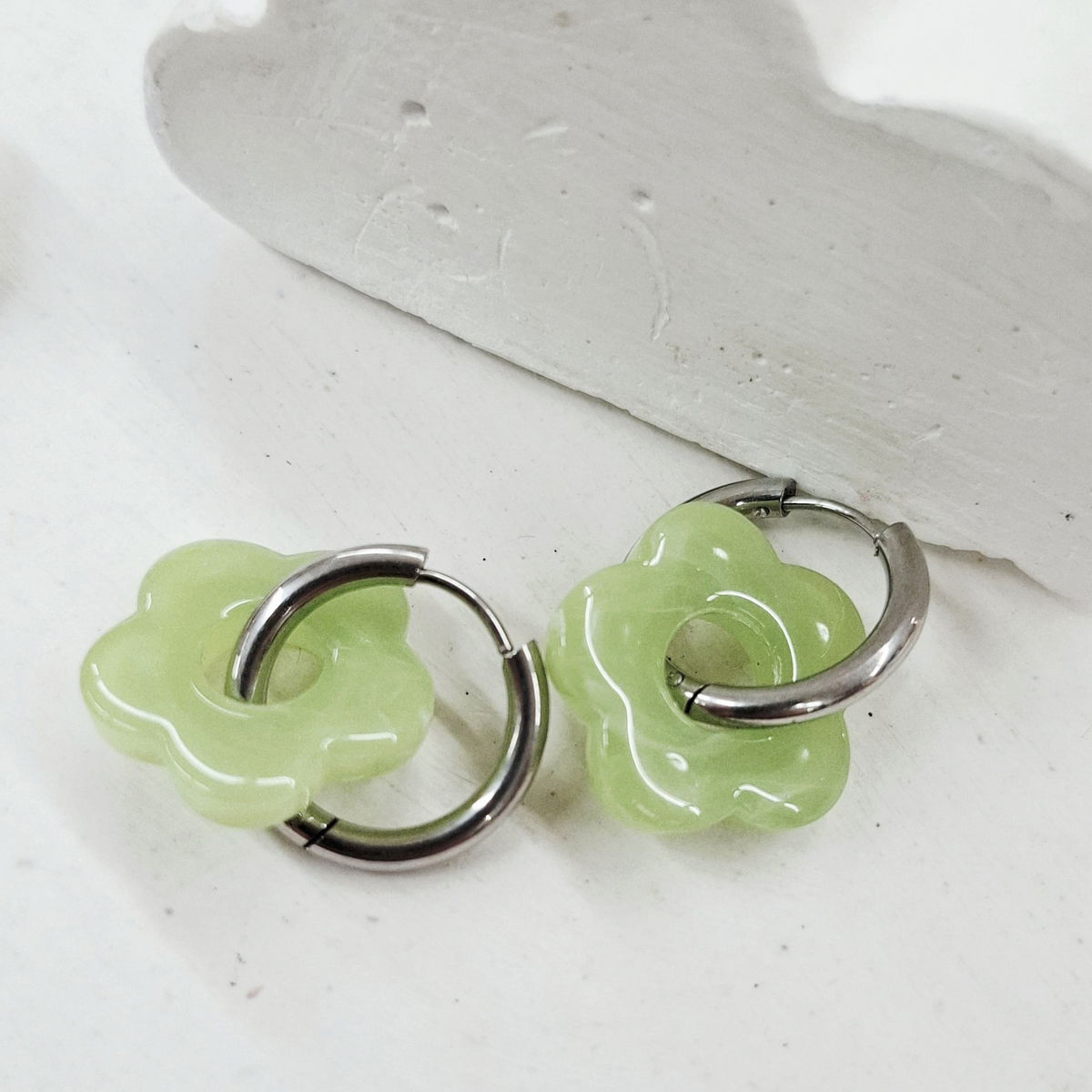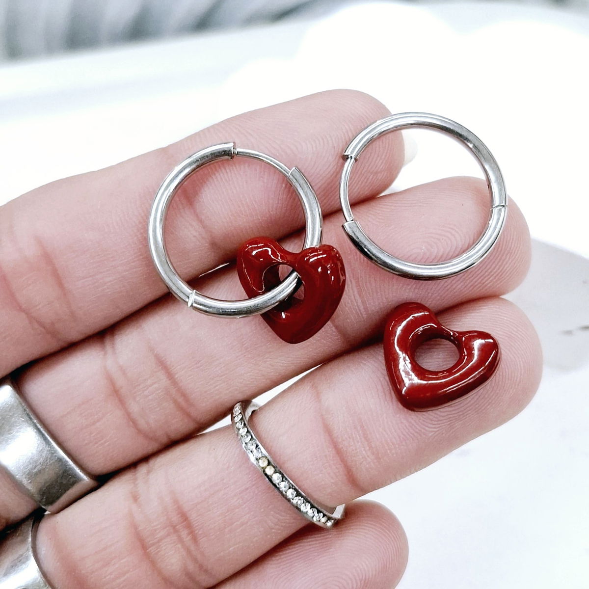 Par de Argollitas de Acero Quirúrgico de 20mm de diámetro con sistema de cierre clicker. Y dijecito de acrílico. Varios modelos diferentes!!