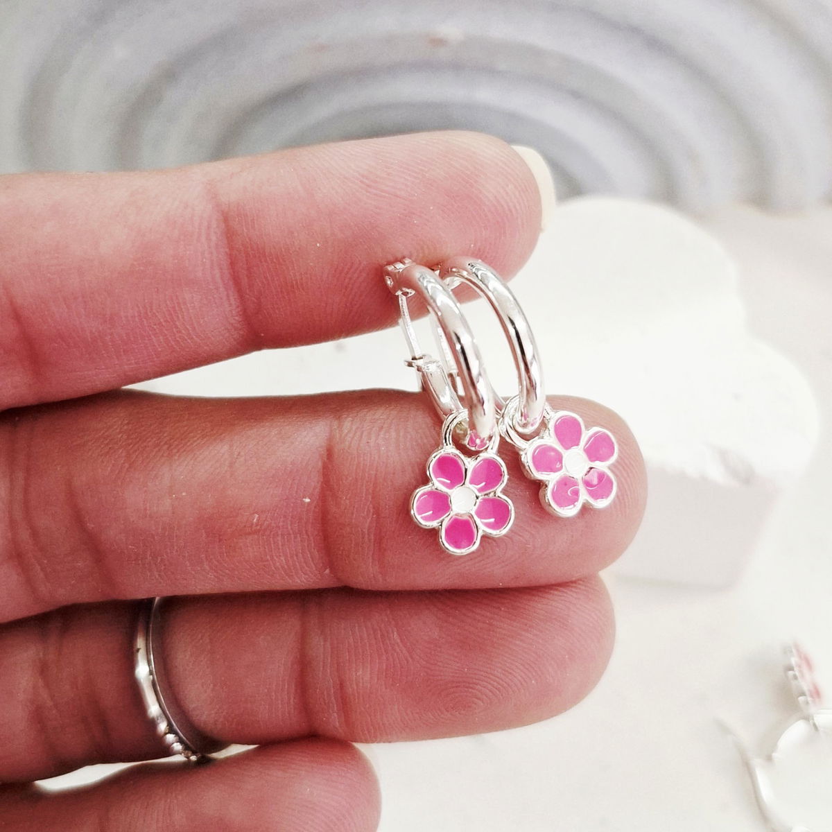Argollitas con Flor esmaltada ●AB●