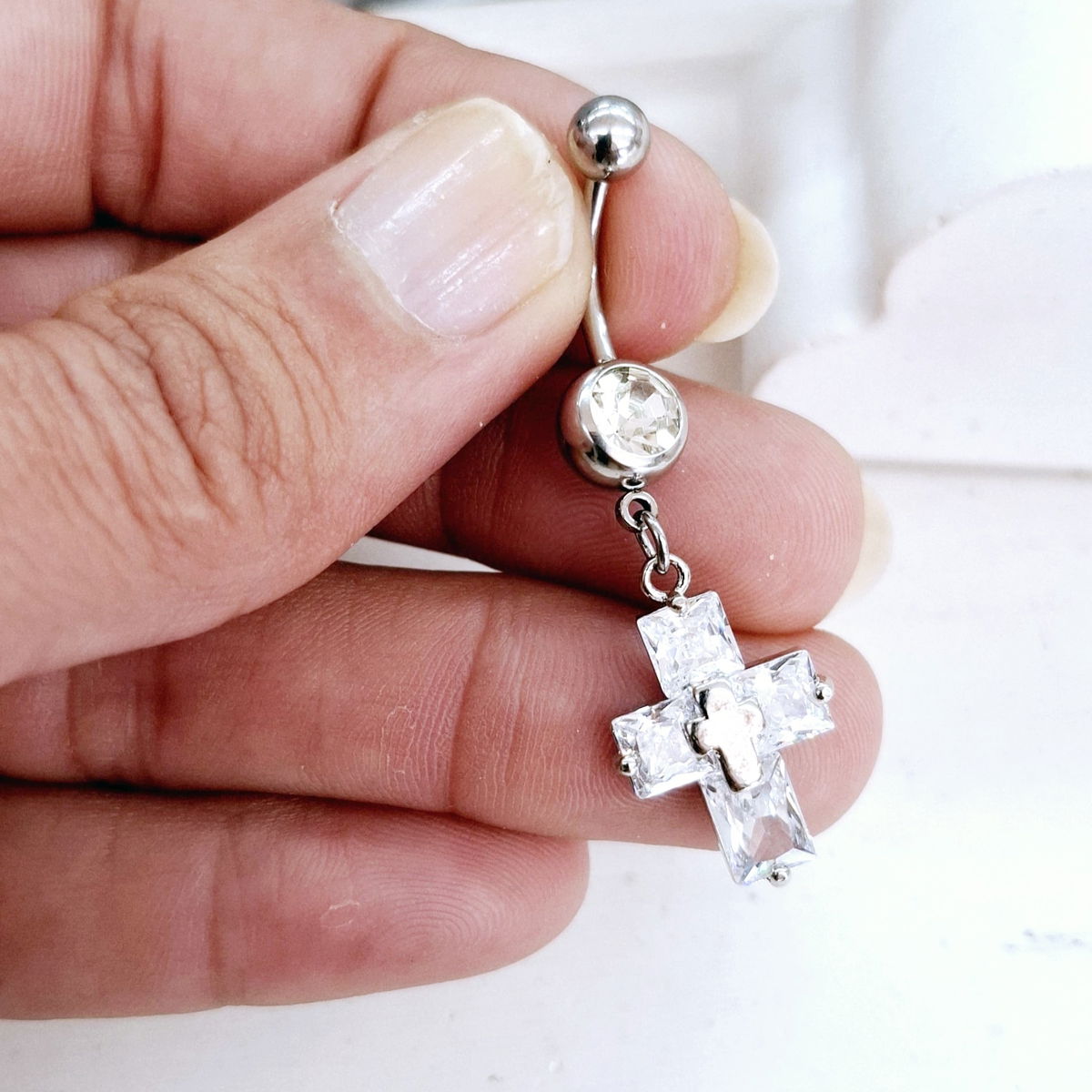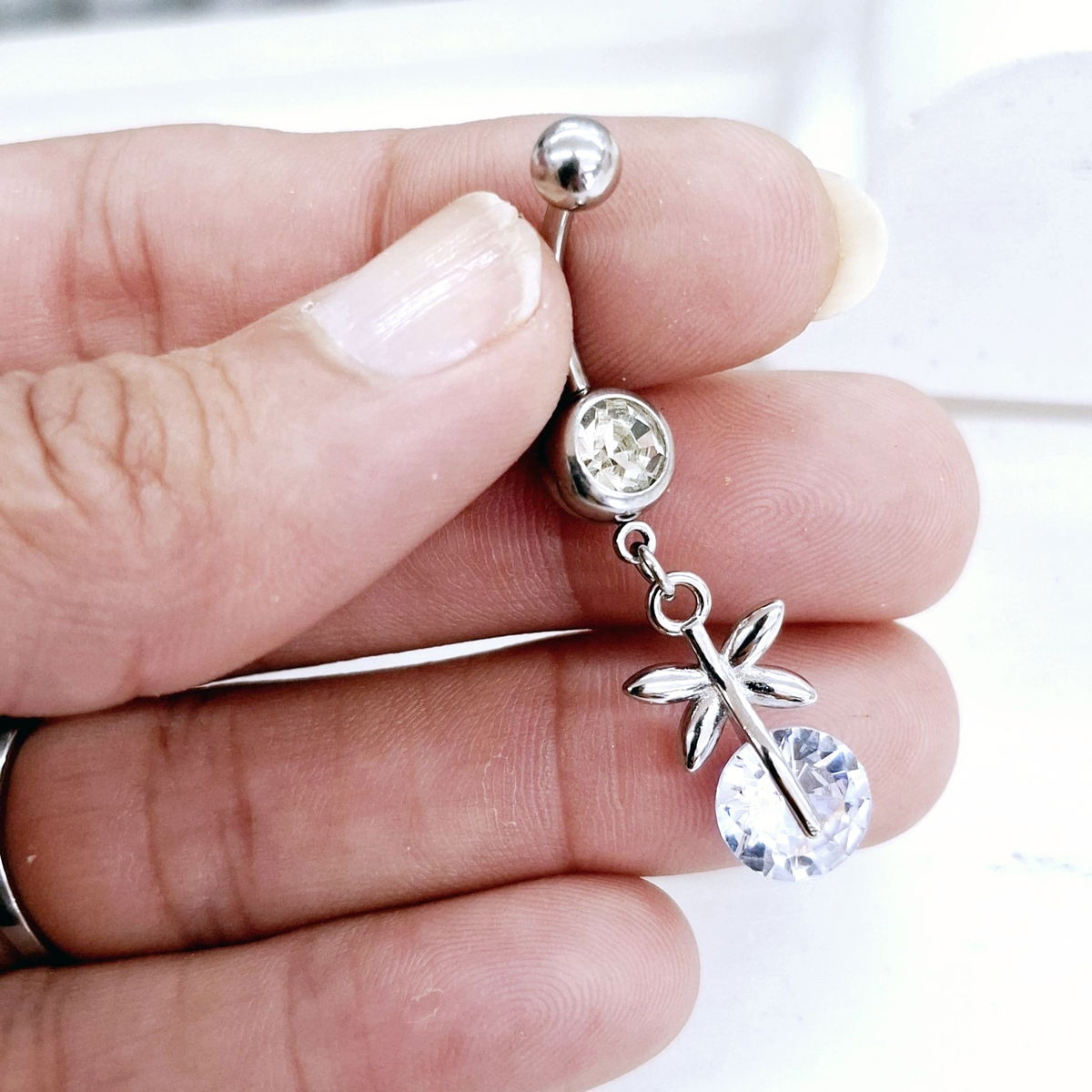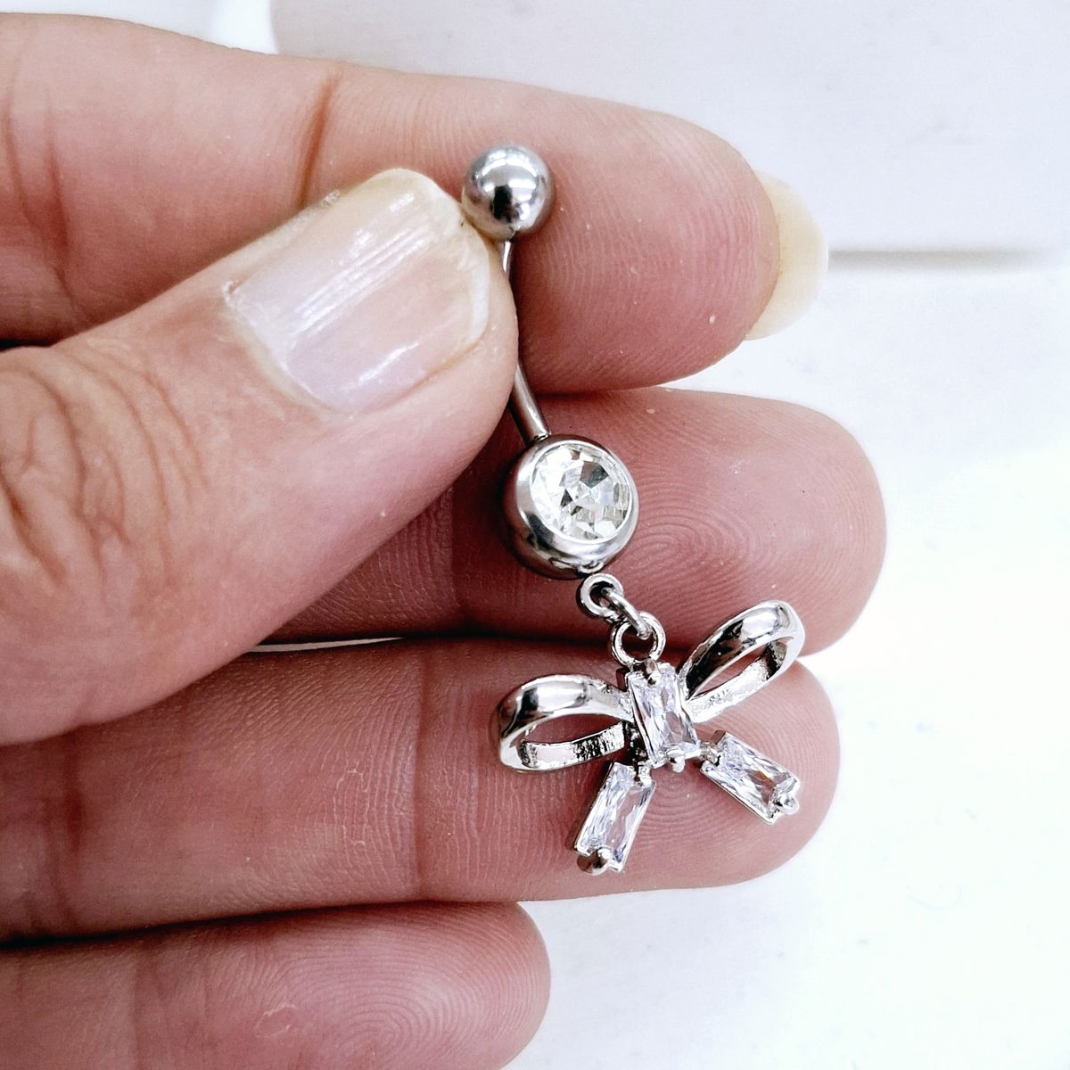 Piercing de ombligo de 1.6mm de espesor y 10mm de largo.