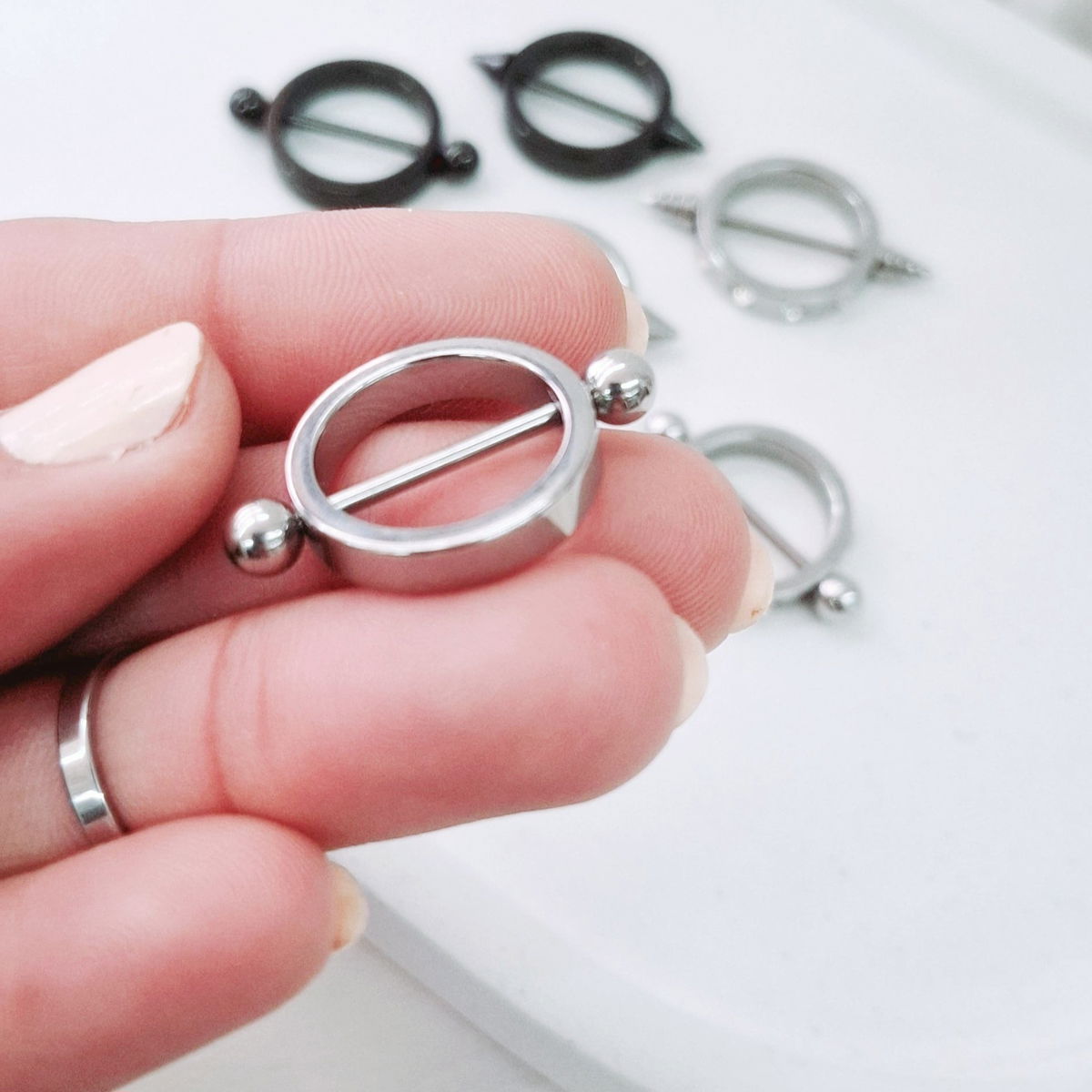 Diferentes modelo de piercing para el pezón,