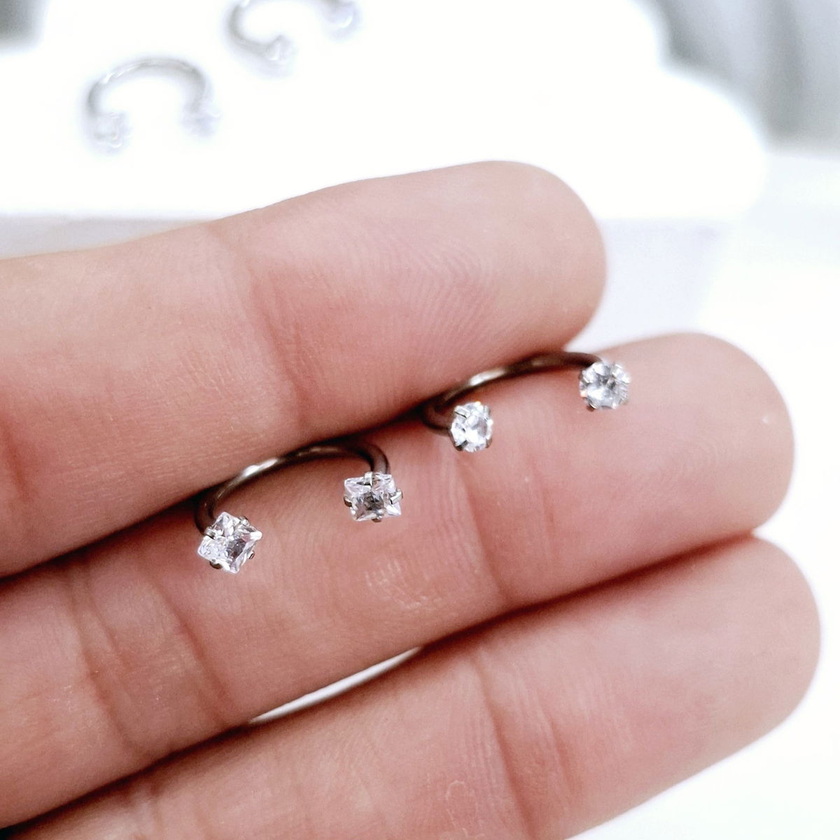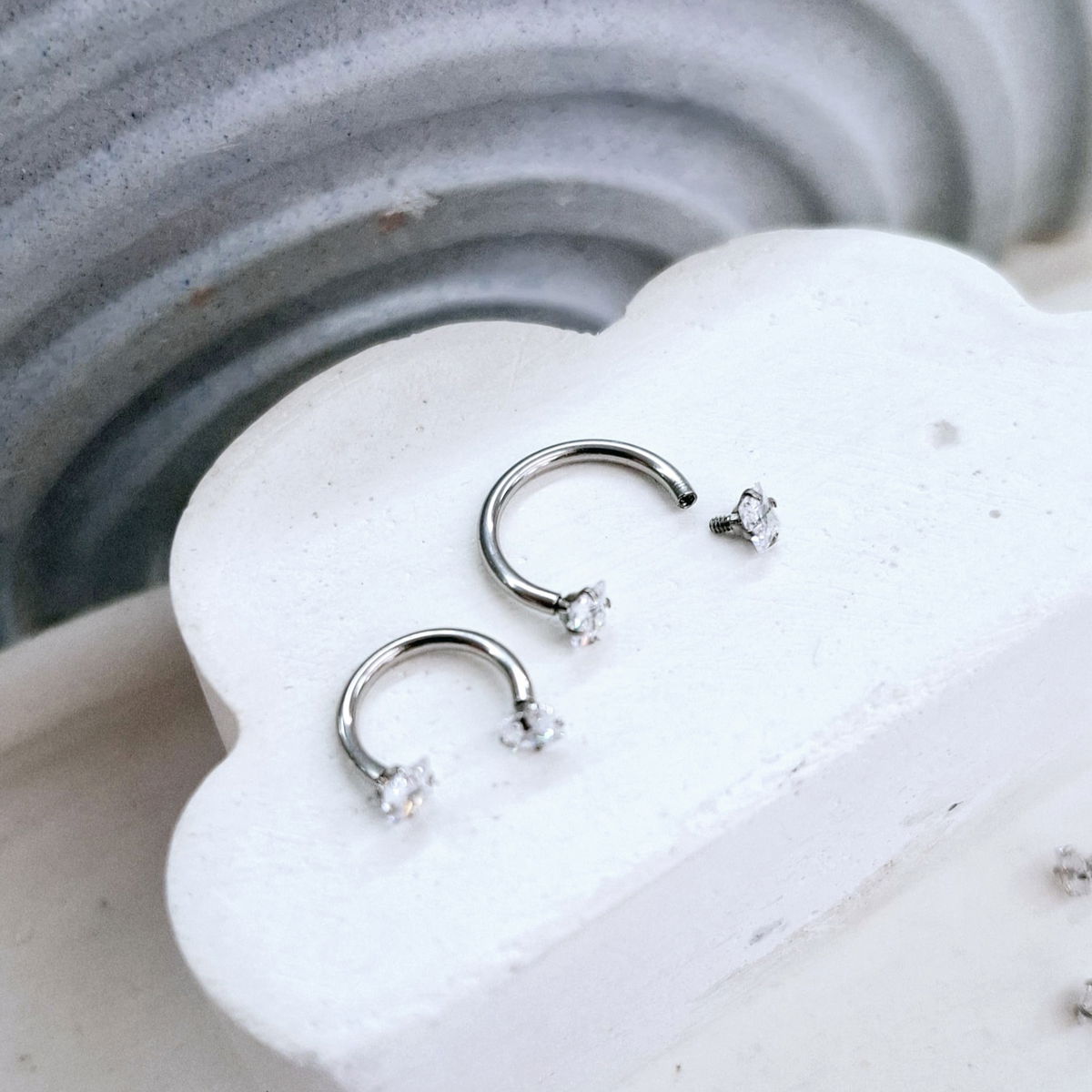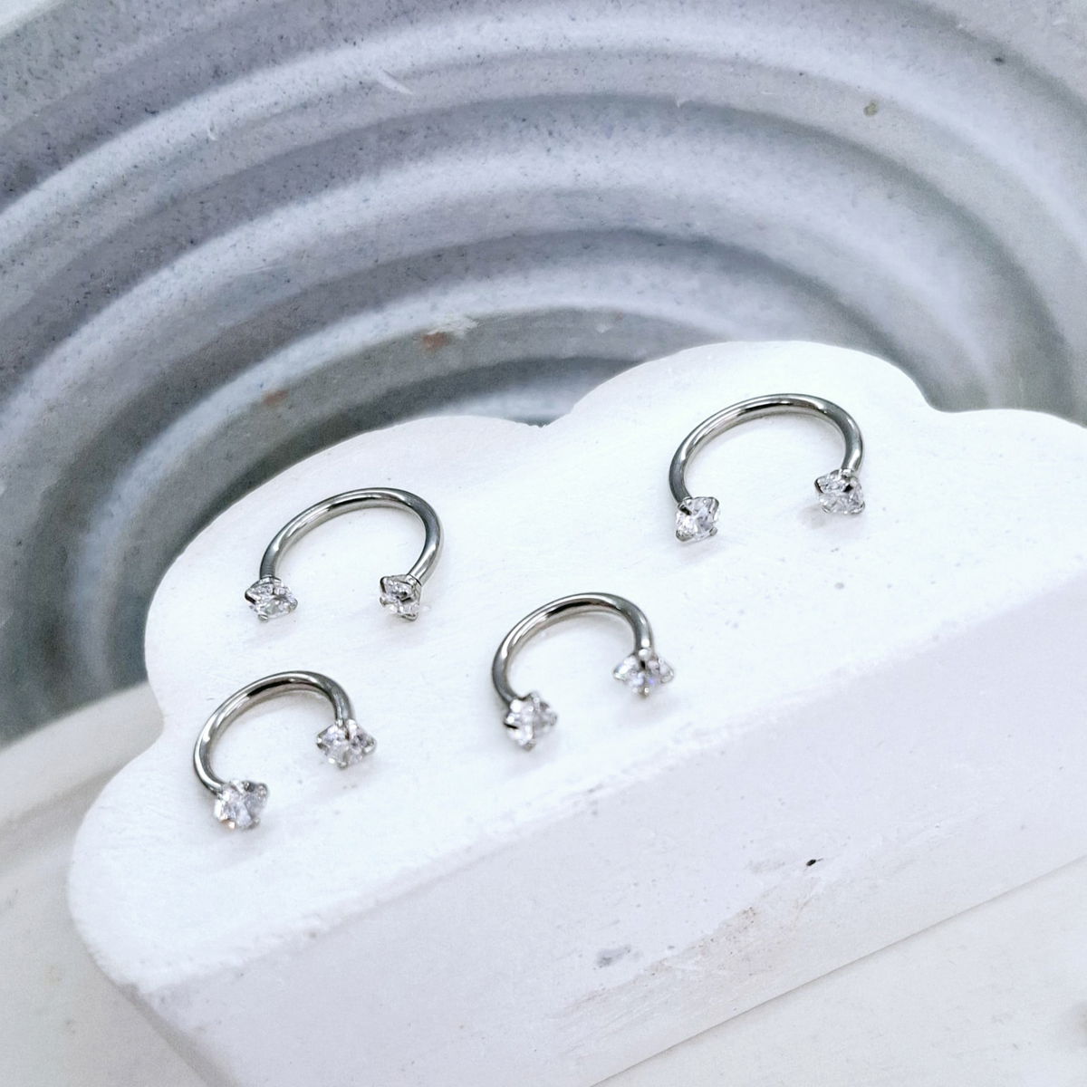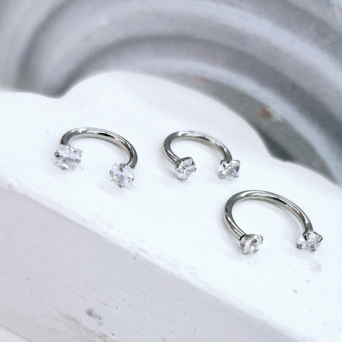 Argollitas de Acero Quirúrgico de 1.2mm de espesor. Con doble strass con rosca interna.