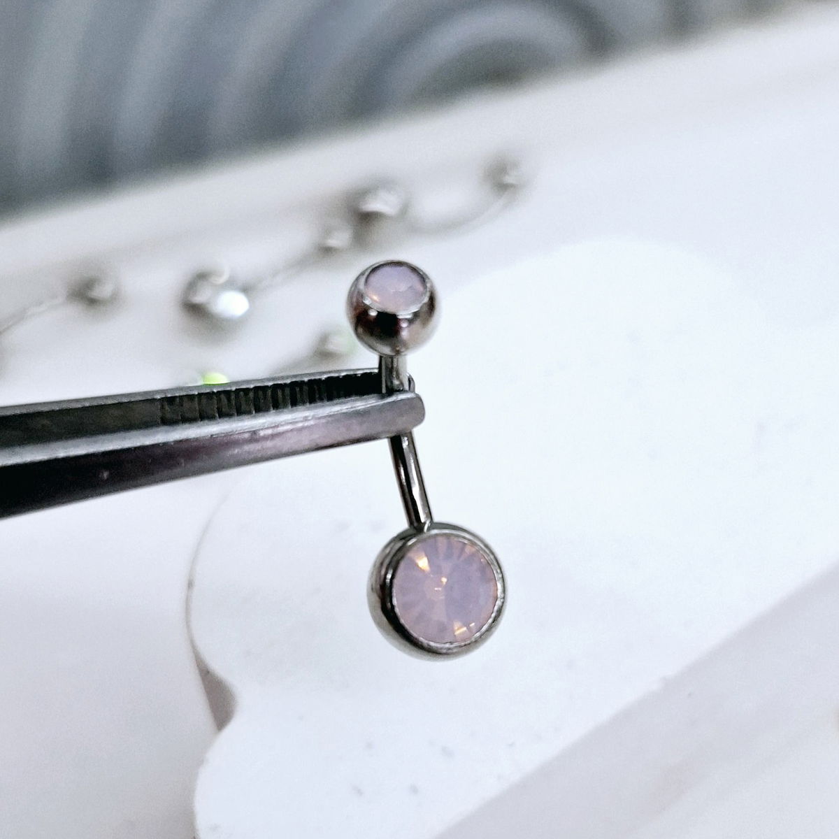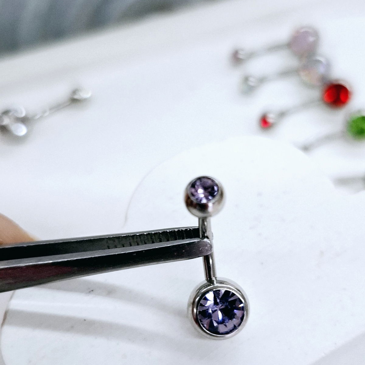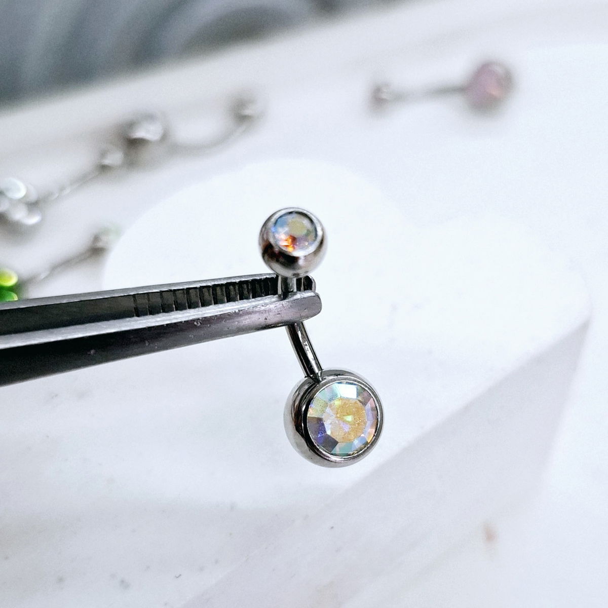 Piercing de Acero Quirúrgico con strass en las pelotitas.. el palito tiene 1.6mm de espesor y un largo de 10mm