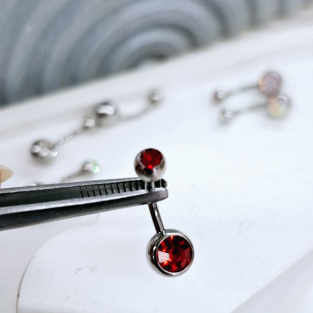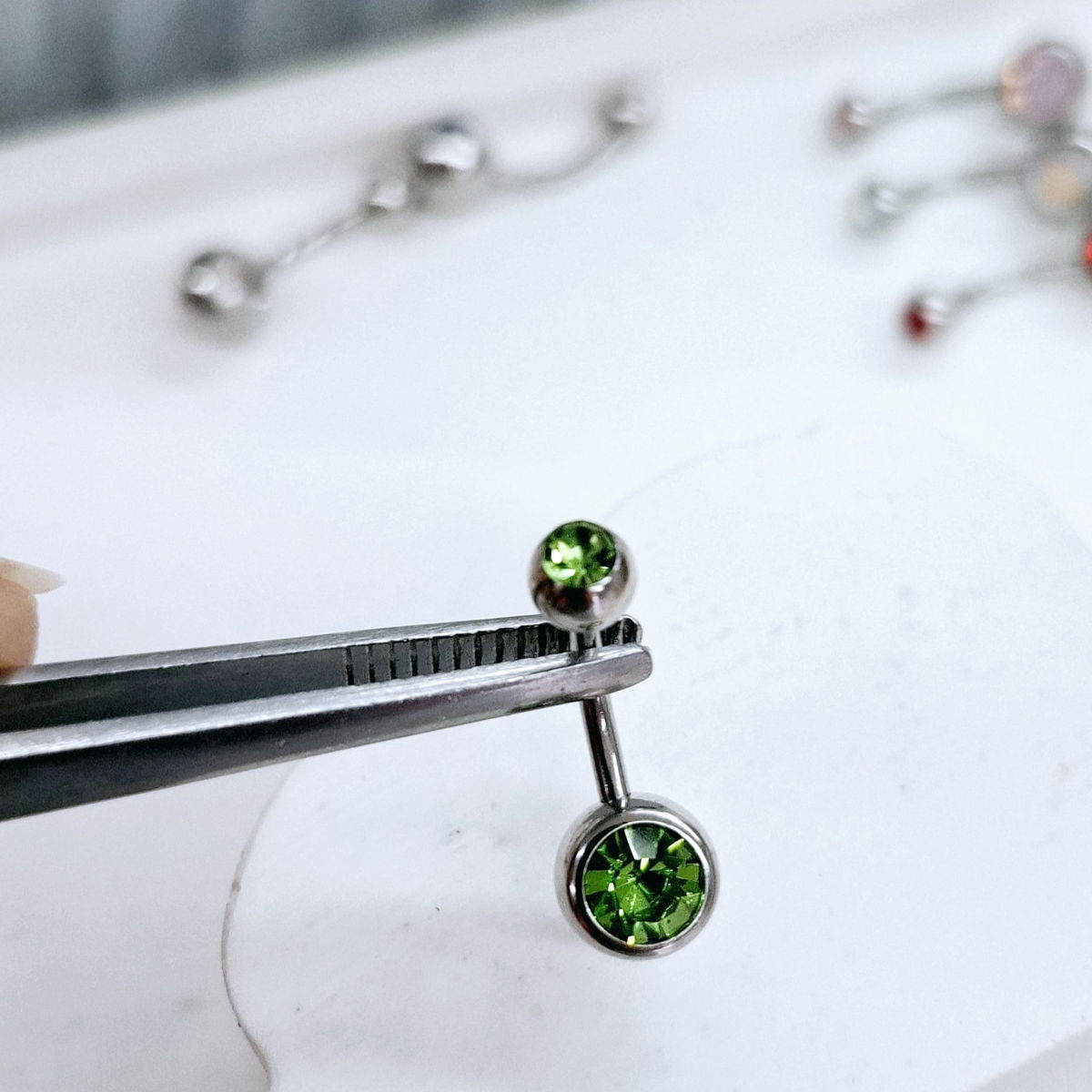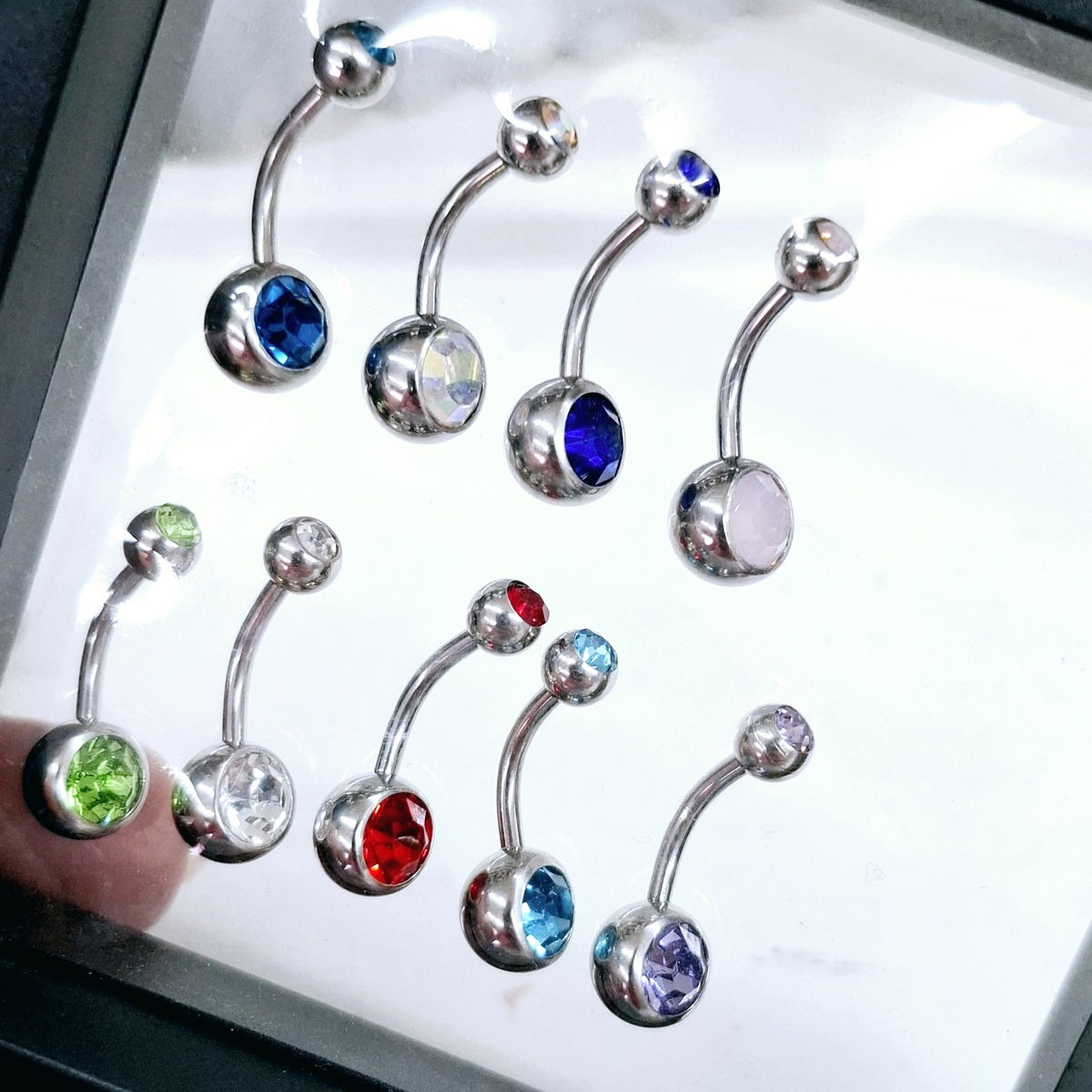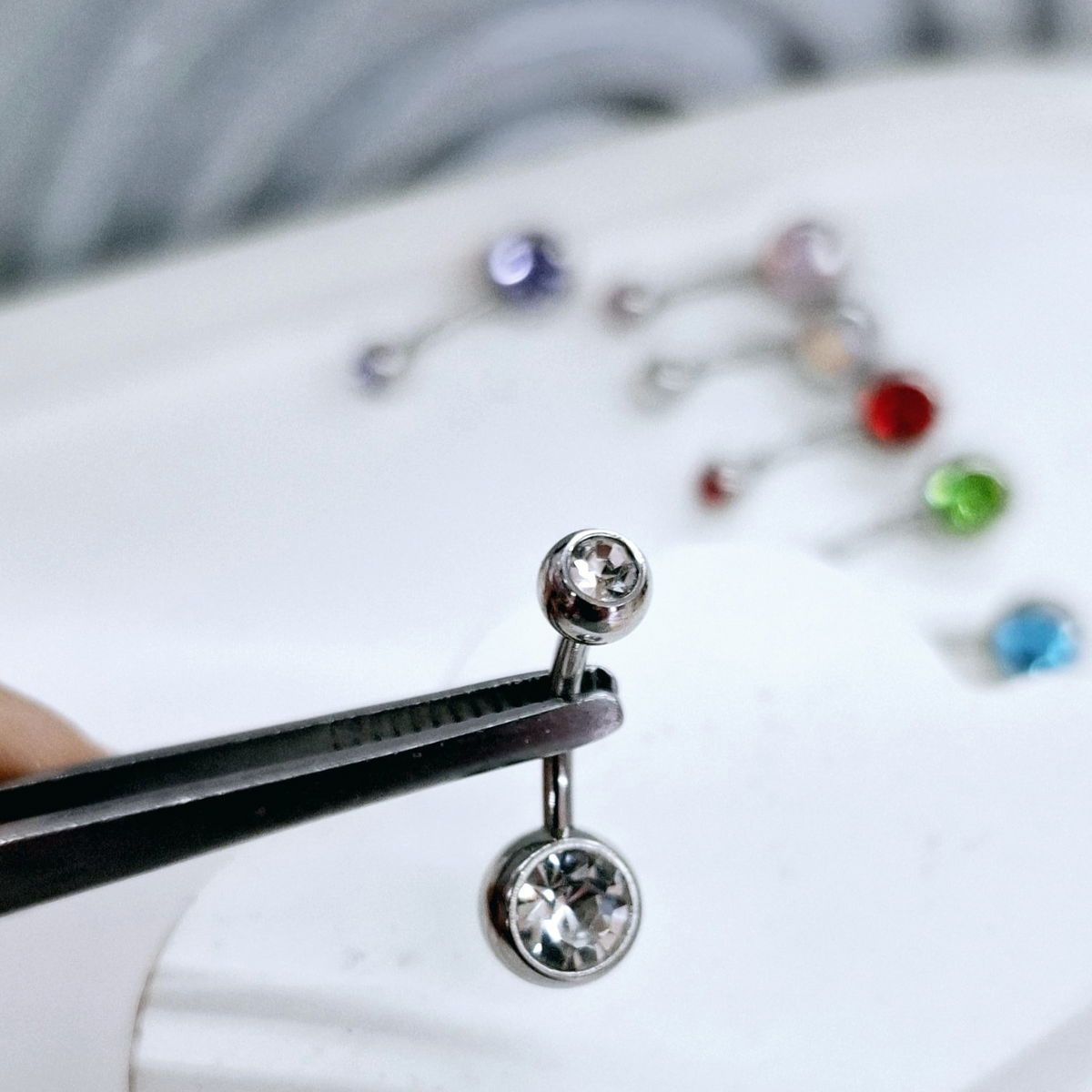 Piercing de Acero Quirúrgico con strass en las pelotitas.. el palito tiene 1.6mm de espesor y un largo de 10mm
