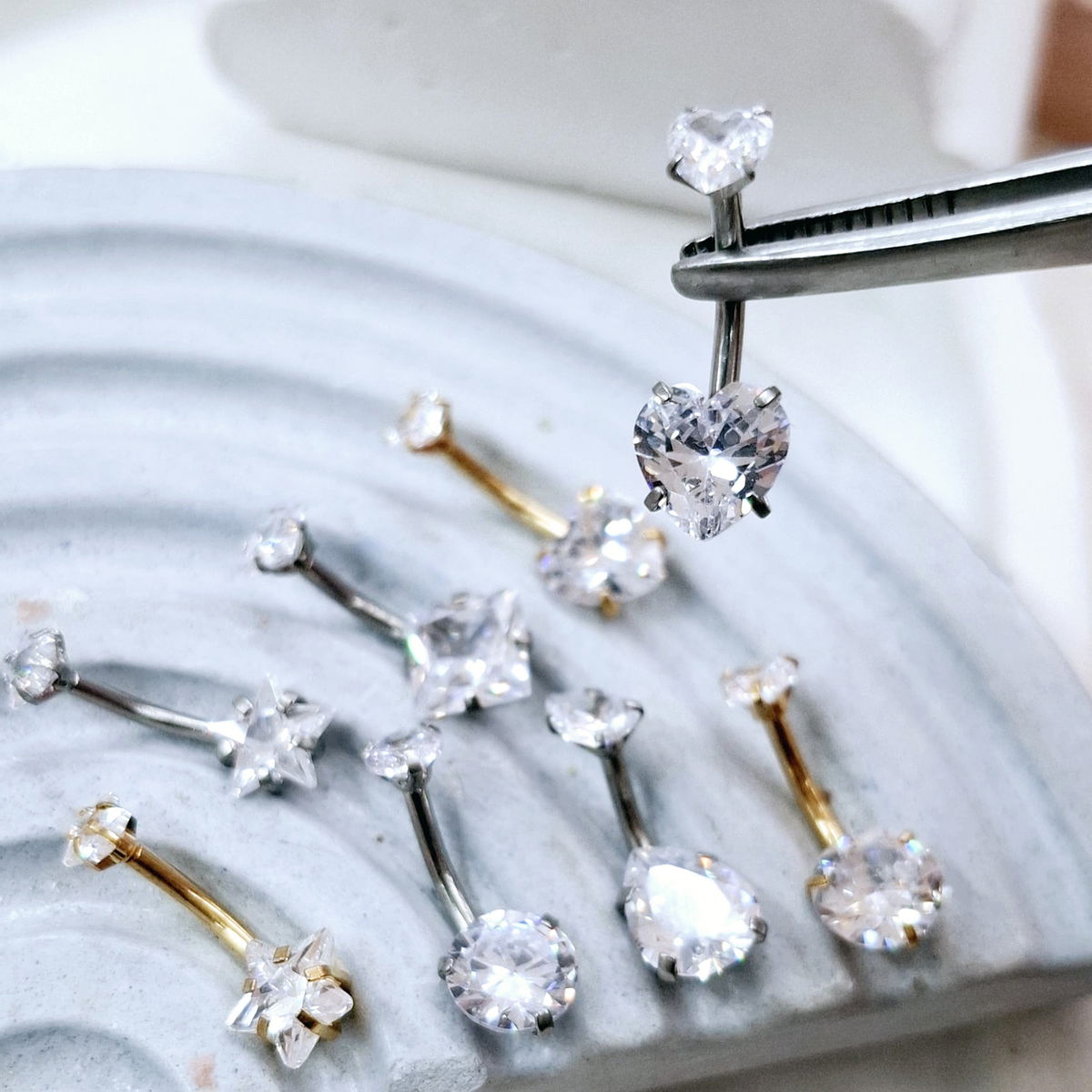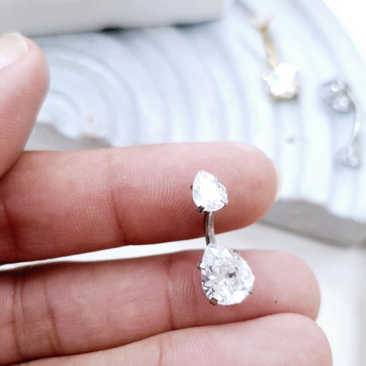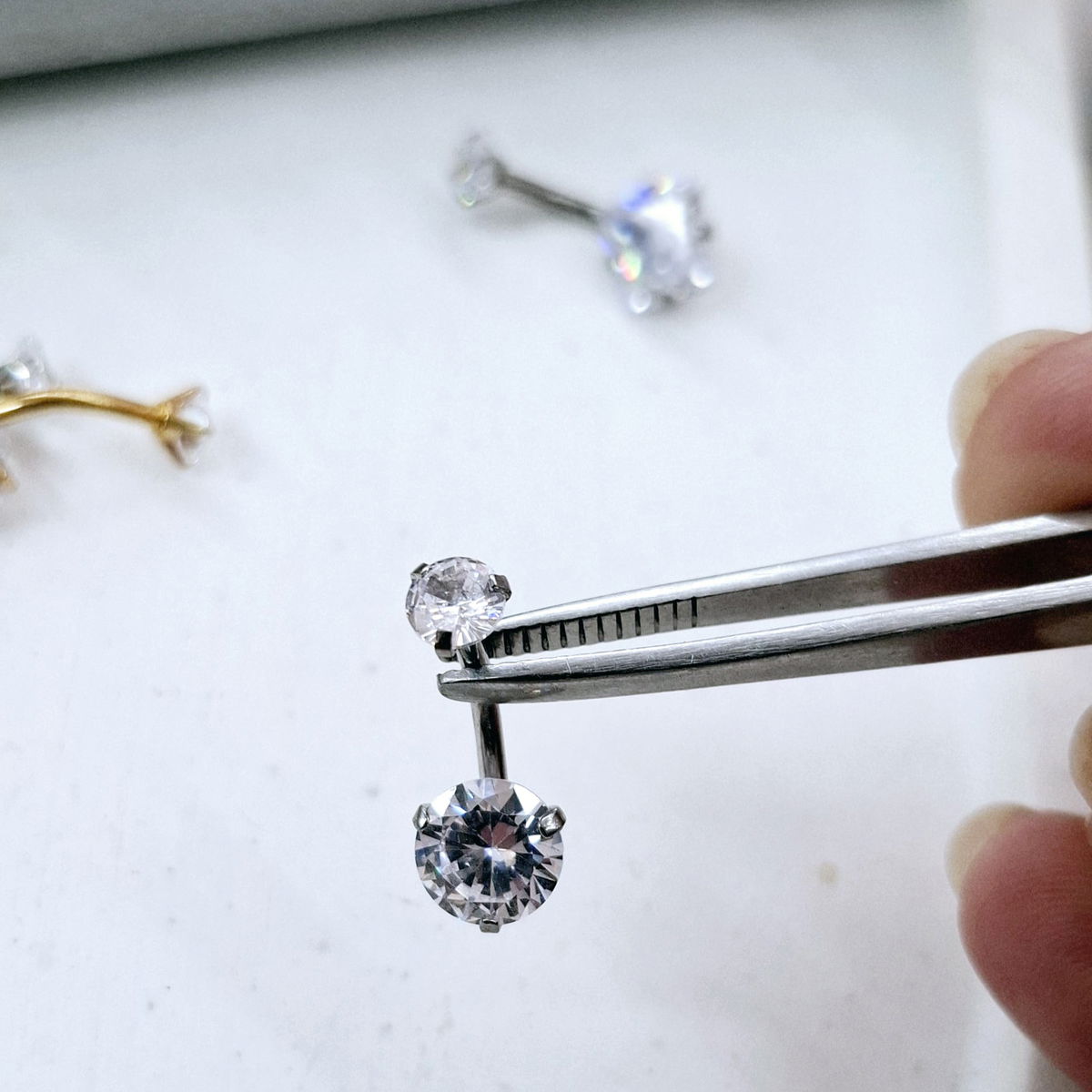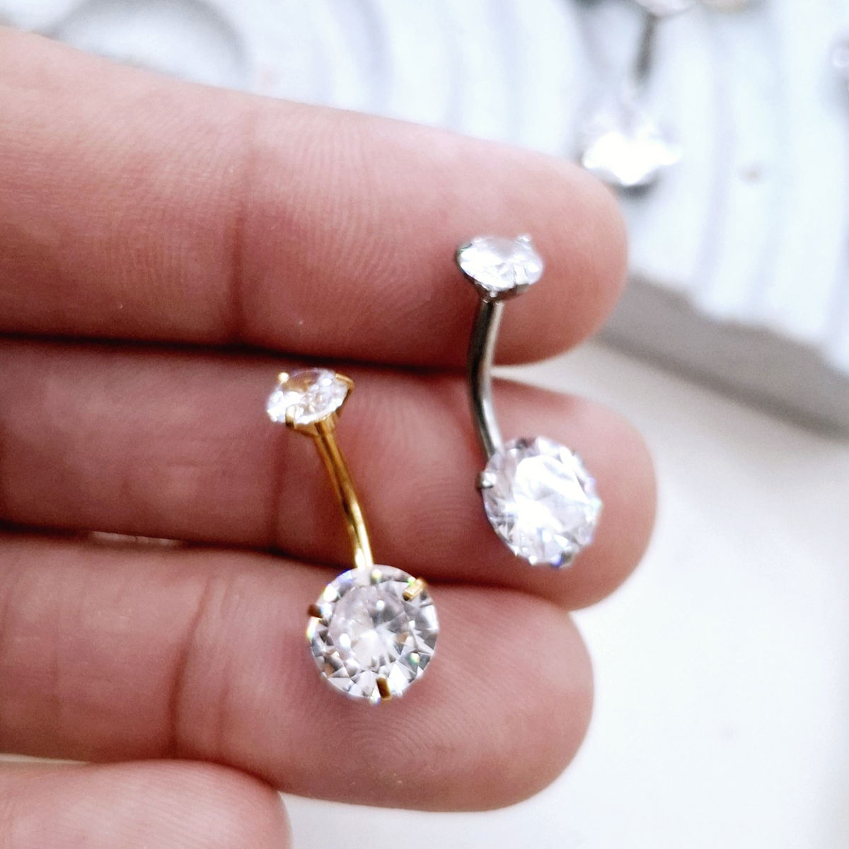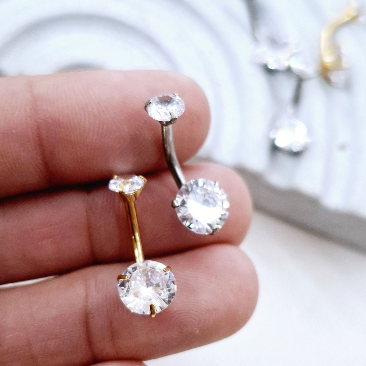 Piercing para ombligo doble strass engarzado con rosca interna.