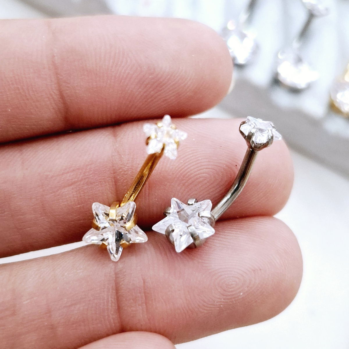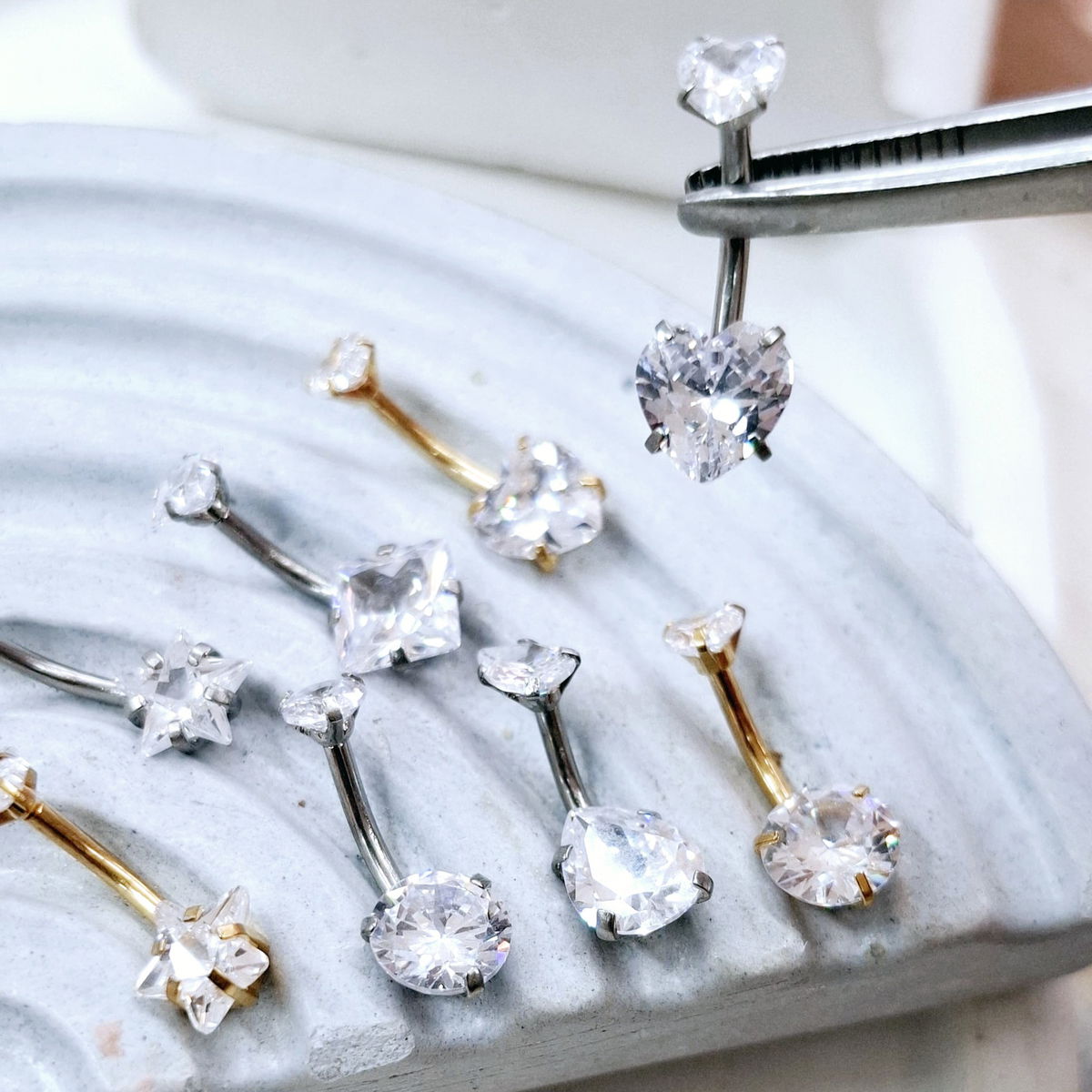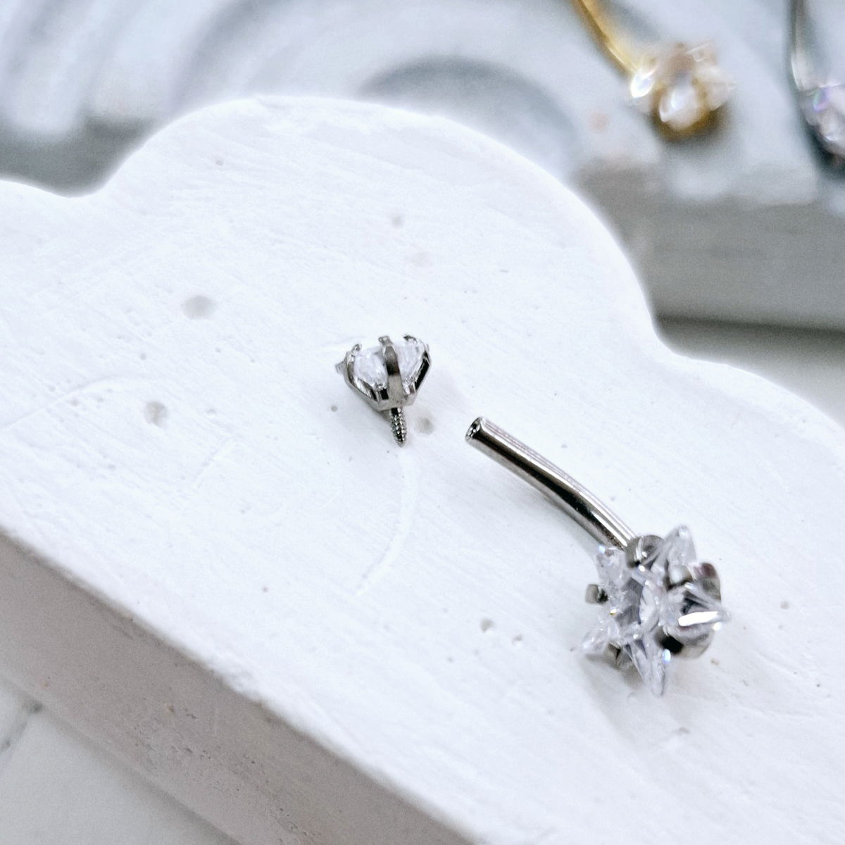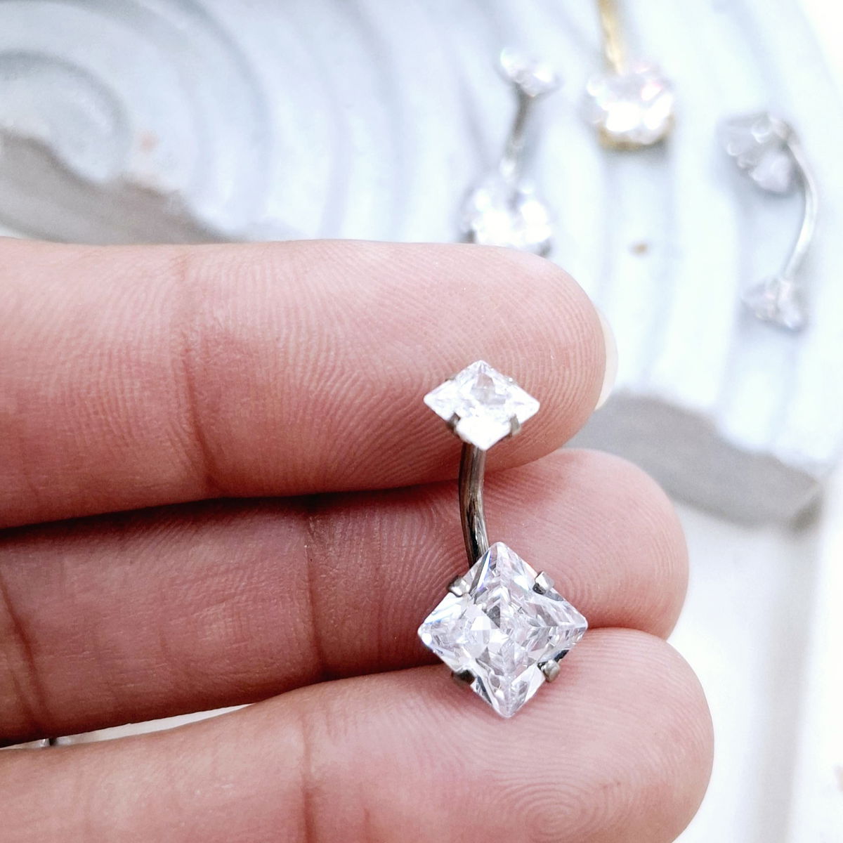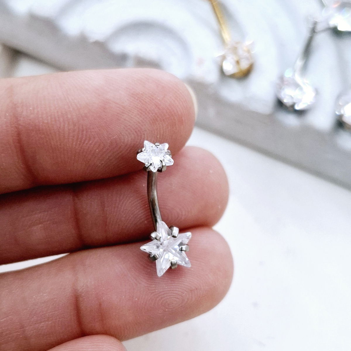Piercing para ombligo doble strass engarzado con rosca interna.
