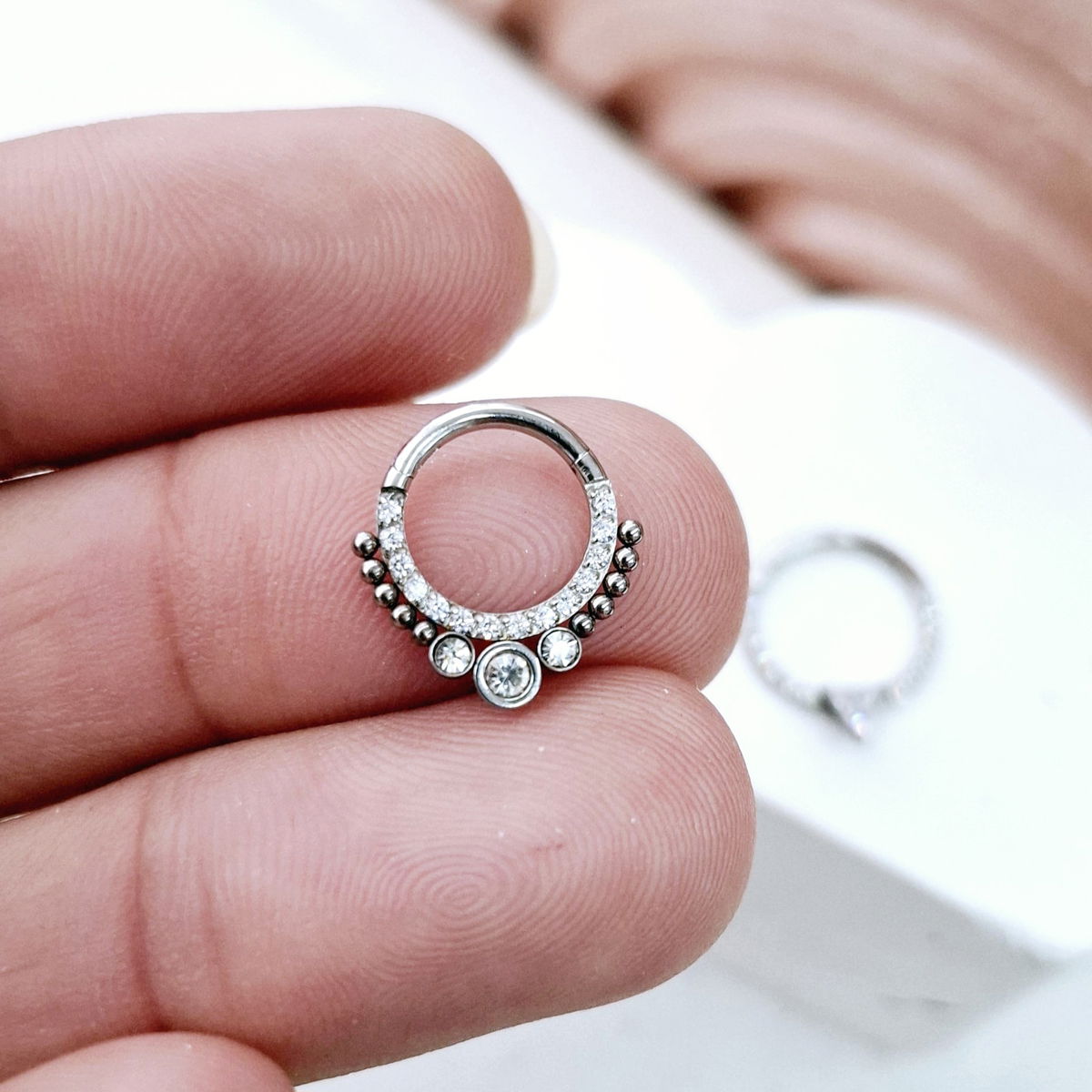 Este modelo se adapta a varias perforaciones de la oreja y también al septum..
